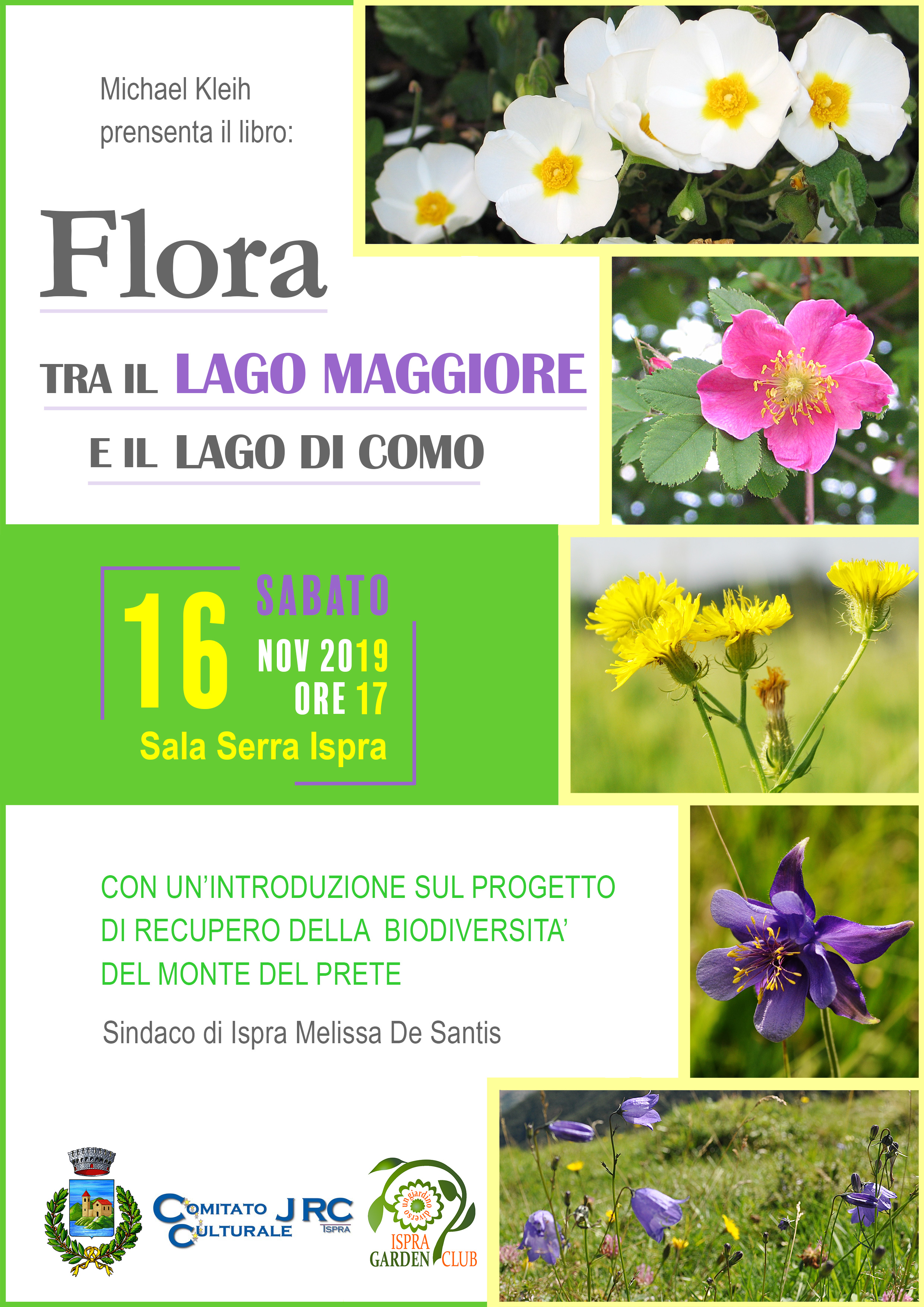 Sabato 16 novembre 2019 alle ore 17,00 presso la Sala Serra del Comune di Ispra, Michael Kleih presenta il libro “Flora tra il il lago Maggiore e il lago di Como”; ci sarà anche un’introduzione sul progetto di recupero della biodiversità del Monte del Prete tenuta dal Sindaco di Ispra Melissa De Santis. La serata è organizzata dal Garden Club Ispra.