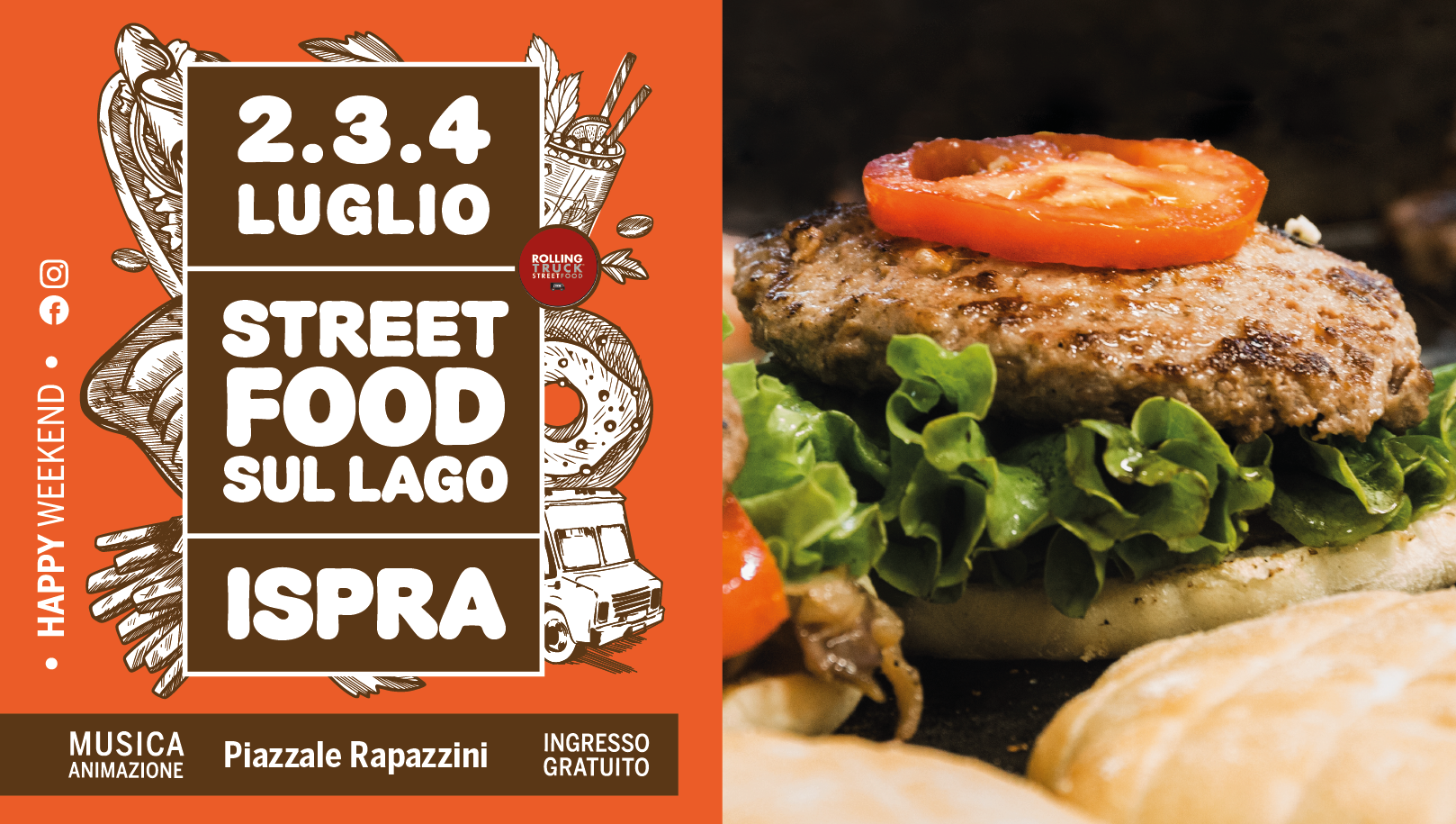 Vi aspettiamo a Ispra con il miglior cibo di strada su truck allestiti come vere e proprie cucine itineranti, sulle sponde del Lago Maggiore, tre giorni all’insegna del buon cibo e del divertimento, con musica, buona birra e ottimi cocktails, firmato Rolling Truck Street Food.