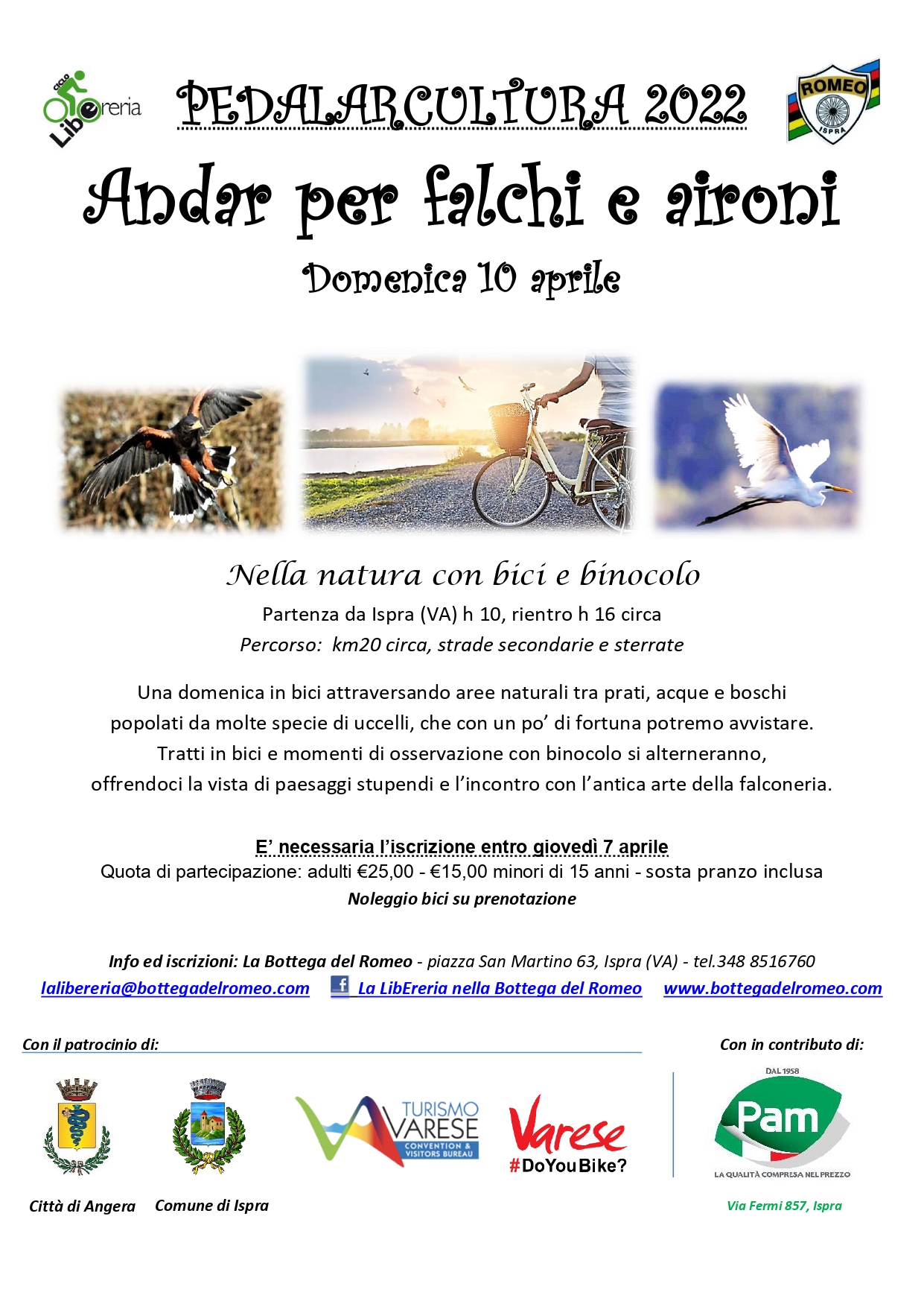 una giornata in bicicletta attraversando aree naturali, tra prati, acque e boschi, alla scoperta di angoli inediti del nostro territorio popolati da molte specie di uccelli;