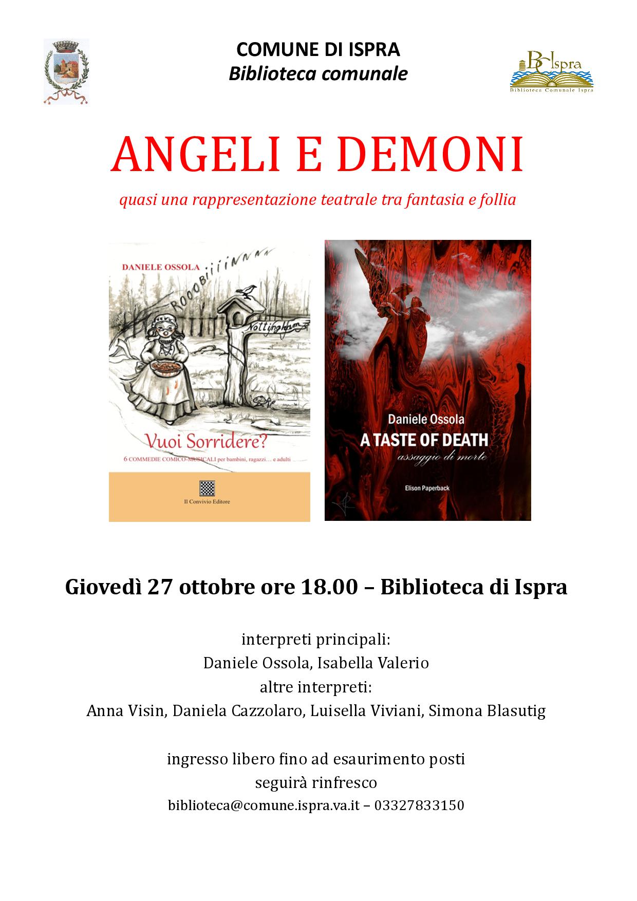 Giovedì 27 ottobre 2022, alle 18, presso la Biblioteca comunale avrà luogo l’evento “Angeli e demoni”, presentazione in forma teatrale degli ultimi libri dell’autore Daniele Ossola.