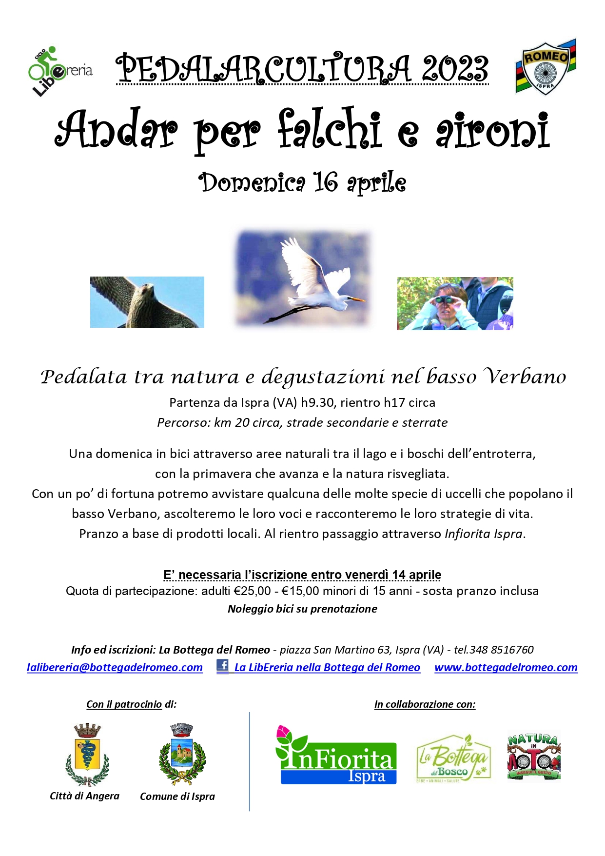 una giornata in bicicletta attraversando aree naturali, tra il lago e i boschi dell’entroterra, con la primavera che avanza e la natura risvegliata. Nel corso della giornata è prevista una sosta pranzo con prodotti locali e al rientro un passaggio attraverso Infiorita Ispra.