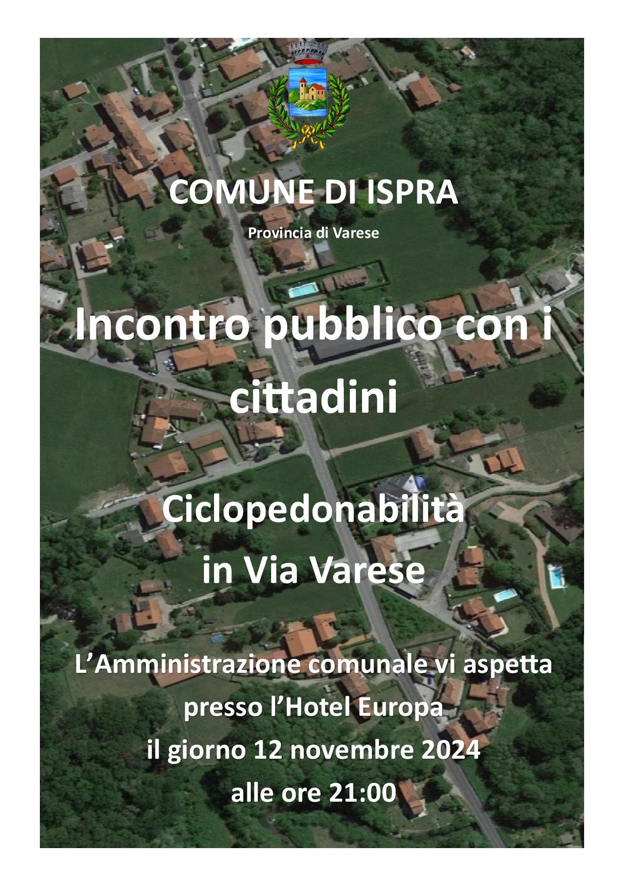 Martedì 12 novembre 2024 alle ore 21.00 presso l’Hotel Europa di Ispra, l’Amministrazione comunale incontra i cittadini per un aggiornamento sulla ciclopedonabilità di Via Varese.